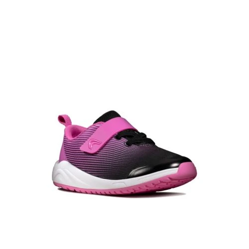 Easy to get on and off thanks to the single riptape fastening, these eye-catching trainers in black, pink and white use a mix of breathable mesh and leather for the upper. Incredibly durable, these sports shoes feature added protection on the heel and toe