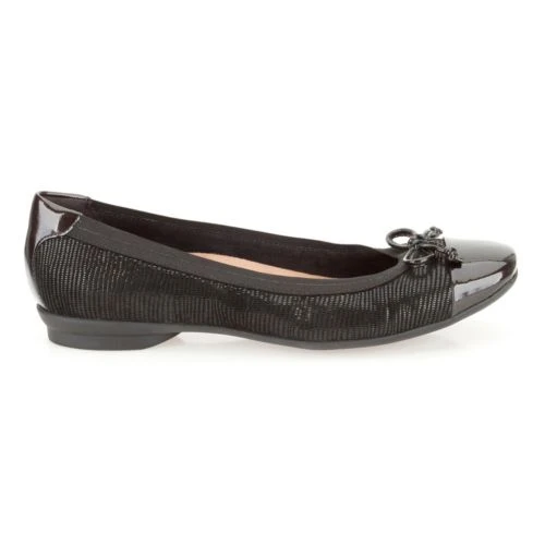 The stylish and practical combine effortlessly in these women’s shoes – everyday flats that will live on your feet. Beautiful classic black textured and patent leather gives rich, premium appeal while a patent toe cap and bow trim show great attention to detail. The pump design features an elasticated topline for extra comfort. Slip on with jeans and a blazer for laidback lunches and shopping with friends.