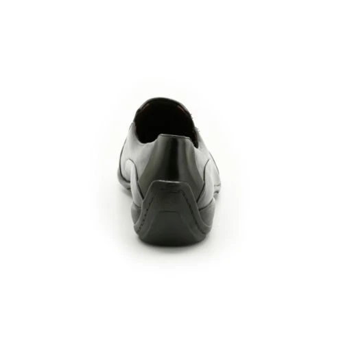 Women’s shoes in soft black leather with underfoot cushioning and a flexible sole for sublime comfort. Ideal for everyday, work, school or college wear.