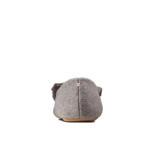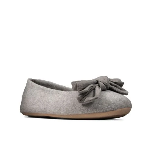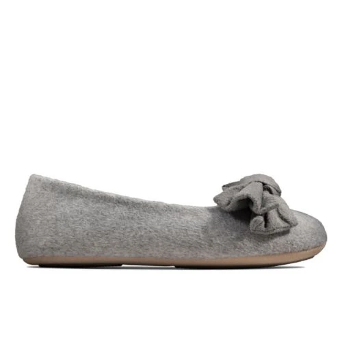 With a feminine edge, these grey felt slippers have a rounded toe and a deconstructed bow embellishment. This sleek silhouette is fun and flexible and offers maximum comfort thanks to the warm faux teddy fur sock and hidden foam cushioning.