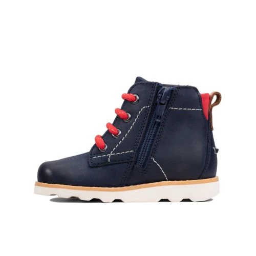 These stylish ankle boots are crafted from a premium leather with a red heel accent and lace detailing. An inside zip allows for easy on and off, while stitching on the upper provides that crafted look. Teamed with a lightweight EVA sole for maximum flexibility and comfort, these boots offer that perfect mini-me look.