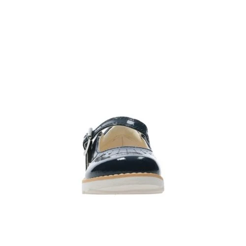 Inspired by archive designs and created for modern play, these classic Mary Jane shoes in a navy patent leather feature traditional detailing with the laser cut out design on the toe, a cleverly concealed riptape fastening and authentic stitching. The lig
