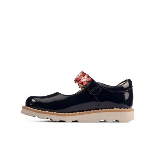 Inspired by our archive designs and created for modern play, Crown Petal is a smart navy patent leather Mary Jane shoe complemented by comfort features. Embellished with flowers on the adjustable riptape strap, soft suede linings and eco-friendly foam.