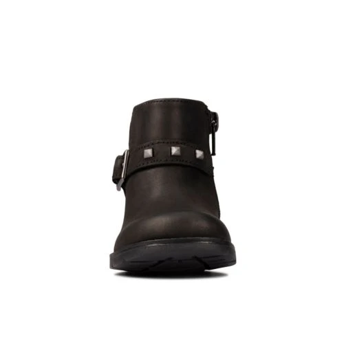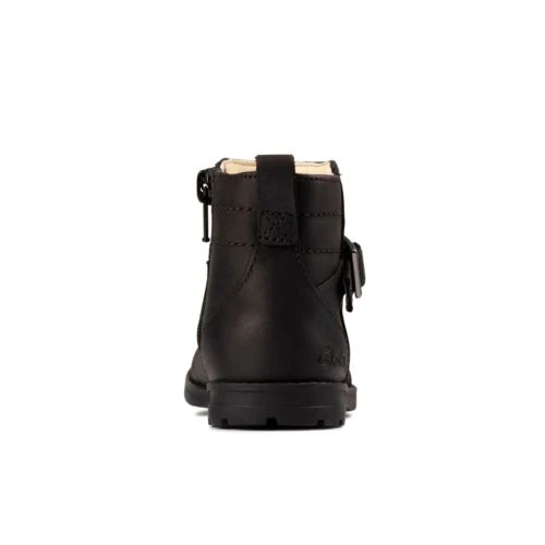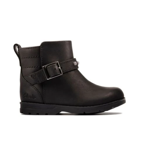 This mini-me biker style boot feels fun yet practical in black leather. It features soft textile linings and an inside zip for easy fastening. The flexible rubber sole gives added grip. The perfect party boot.