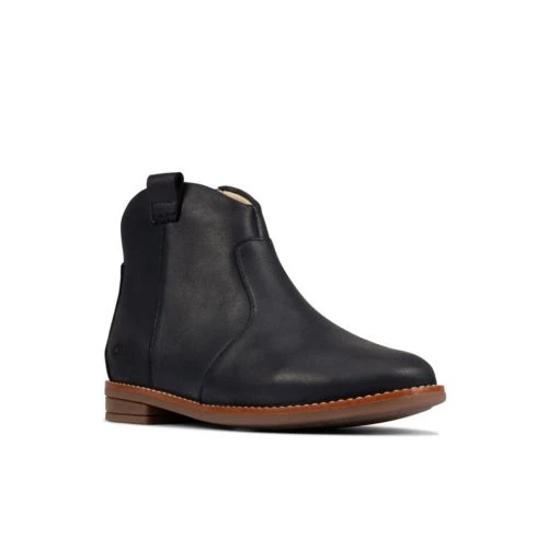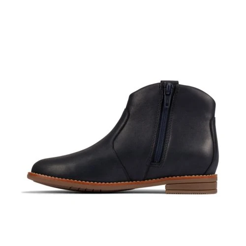 Super-stylish kids boots with a subtle Western influence. The crafted leather upper in classic navy features a grown-up almond toe shape and fastens easily with an inside zip. Soft textile linings feel comfortable against the foot and a rubber sole adds g