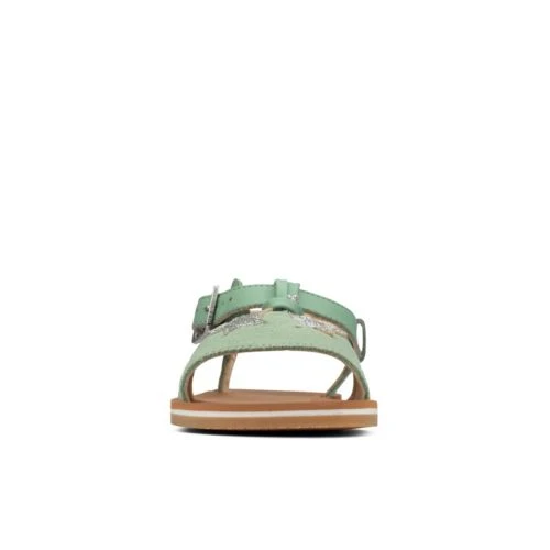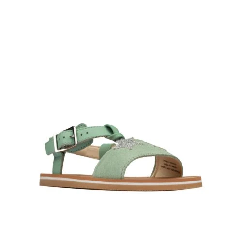 Premium light green leather takes on glitter stars in Finch Summer for a fresh summer style for every occasion. An expertly designed mini-me look, this hard-wearing leather board sandal provides breathability and comfort while recycled rubber outsoles abs