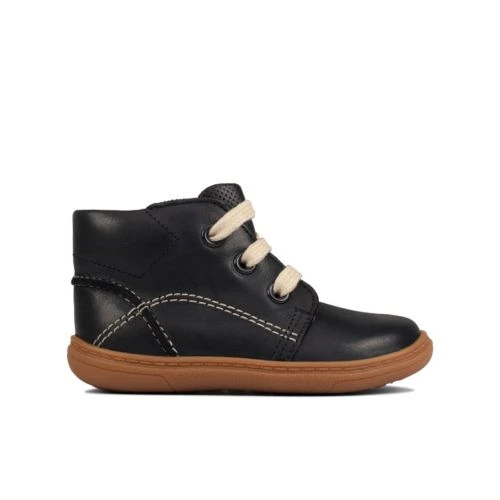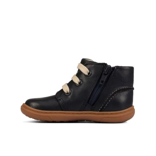 Oozing Clarks DNA and craftsmanship, this gorgeous toddler ankle boot – with hints of the classic Desert Boot – is designed to be ultra-soft and supportive while freeing up natural movement. The premium leather upper features a lace fastening and inside zip for easy foot entry, while textile linings feel soft against the foot, and a leather footbed creates a personalised fit over time. The rubber sole has minimal layers at targeted points to stay super-flexible and adds grip.