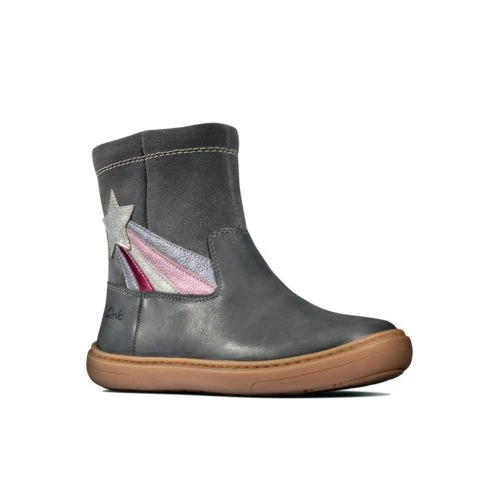 Fabulous boots from our Flash collection, this supersoft style features a mid-length cut in dark grey leather with sparkly retro-inspired star detail and an easy on-off inside fastening zip.Â