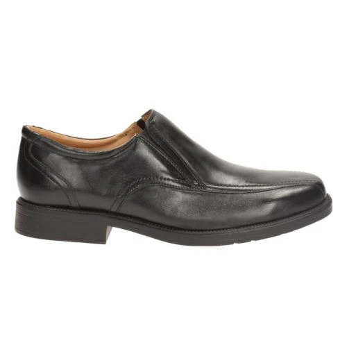 Traditional men’s slip on shoes in black leather, smart classic design perfect for everyday wear.