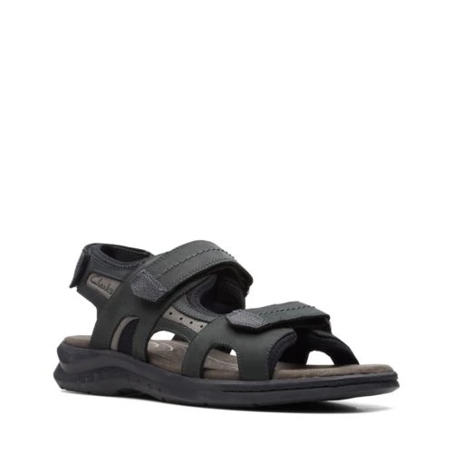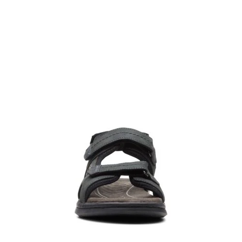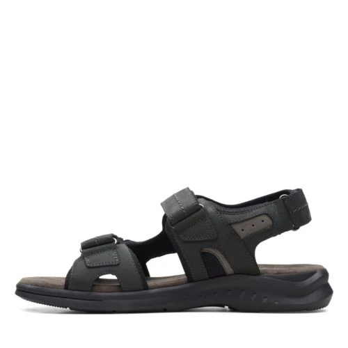 Clarks Sandals Black Nubuck Hapsford Trail A heritage-inspired design with outdoor influence, the Hapsford Slide sandal combines comfort with ground-breaking technology in its cushioned footbed and flexi sole. The result is a versatile profile that looks stylish in black nubuck.