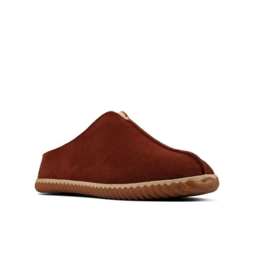 Contemporary men’s mule slippers featuring a dark tan suede upper finished with central seam detail and teamed with cosy faux fur linings and a sawtooth rubber sole. Ideal for gifting.