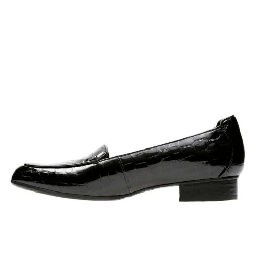 Keesha Luca, women’s shoes, black pat/croc – Ideal for work, these loafer inspired slip-on shoes feature a 2.5cm block heel for everyday wearable height. The black patent upper uses a croc pattern for added interest and with our Cushion Plus technology this style delivers on comfort.