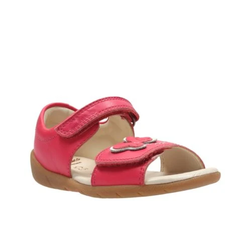 Kiani Sun Fst, babies sandals, pink leather – These cute two part sandals are crafted from soft leather in a bright pink shade and feature a butterfly trim on the toe. Adjustable riptape fastenings secure feet while the pa