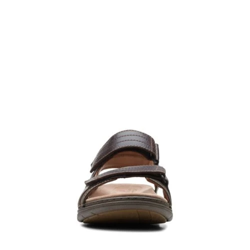 With Velcro fastening, these summer sandals from Clarks Unstructured collection take on a casual active look. The brown leather upper features contrast stitching and two adjustable straps for a secure fit. Perfect for the summer season, the sole is a combination of EVA and rubber to ensure these sandals are lightweight and durable, while soft textile linings cushion feet with every step.