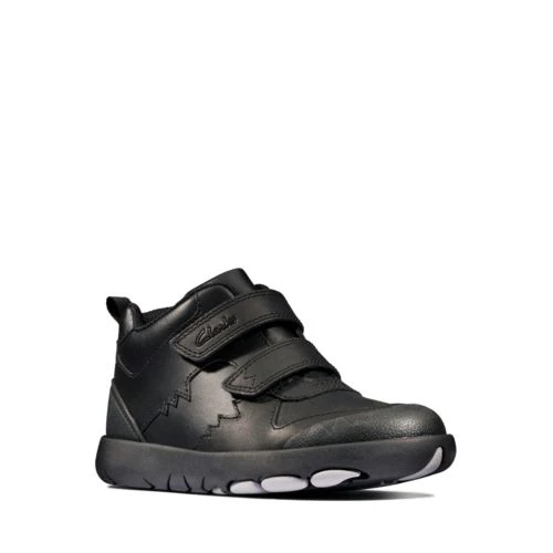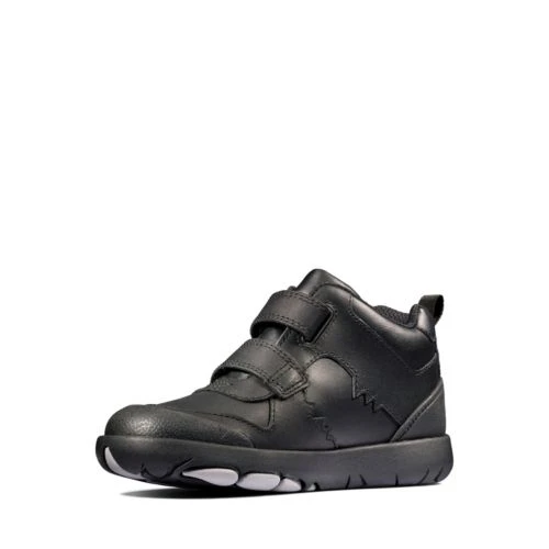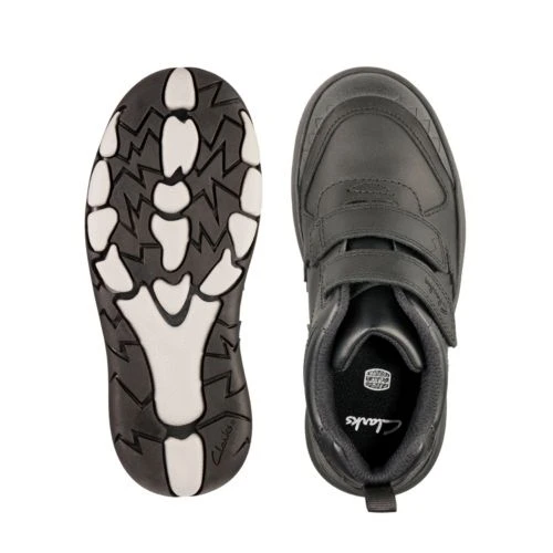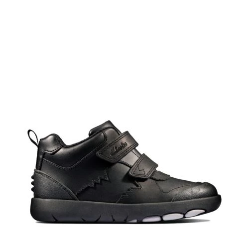 A durable ankle boot in black leather, perfect for school and created with an awesome sole motif and heel detail, so kids can feel they are walking in the footprints of a dinosaur. Features toe and heel bumpers for added foot protection.