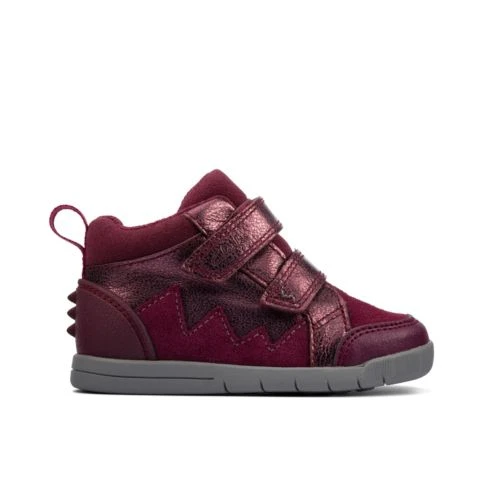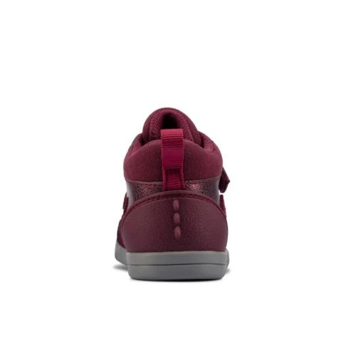 What a roarsome boot! With rubber heel spikes, reflective scratch details and a dino footprint motif on the sole, Rex Park is a fun and tactile ankle boot with 360° design appeal. The tough berry leather upper has toe and heel bumpers for foot protection,