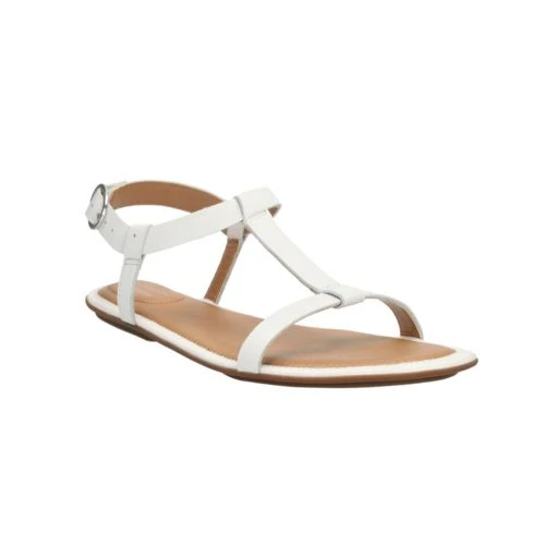 This white leather flat sandal is on trend this season with its sleek profile and T-bar straps. Risi Hop has a lightweight and flexible rubber sole and this stylish and classic strappy sandal can be worn with anything – smart or casual. In soft premium white leather, the ankle strap has a buckle and is adjustable for a better fit.