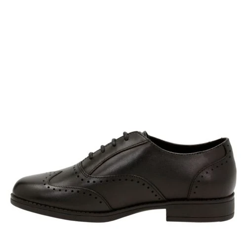 Girls can embrace the popular man tailoring trend with these lace-up brogues that are perfect for school or adding a fashionable twist to formalwear. An almond shaped toe adds a feminine twist while perforations adorn the black leather upper.