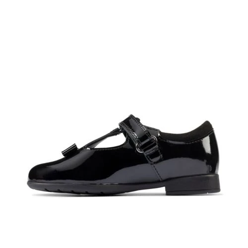 Perfect for school, this beautifully designed T-bar shoe features a bow trim on the slim leather upper and a lightweight, flexible sole. The easy to fasten riptape strap adjusts for best fit while a padded collar adds comfort and ankle support.