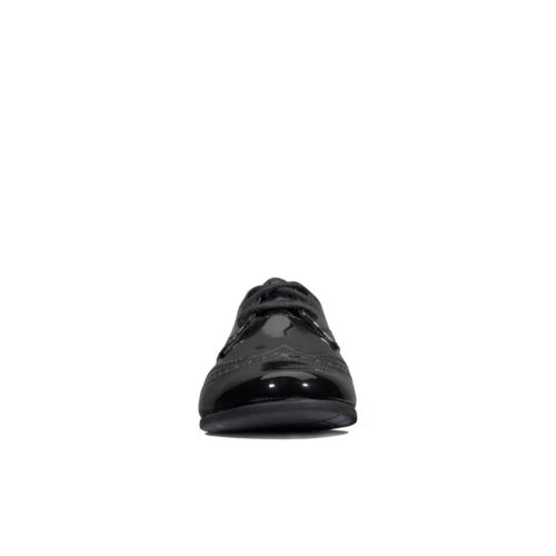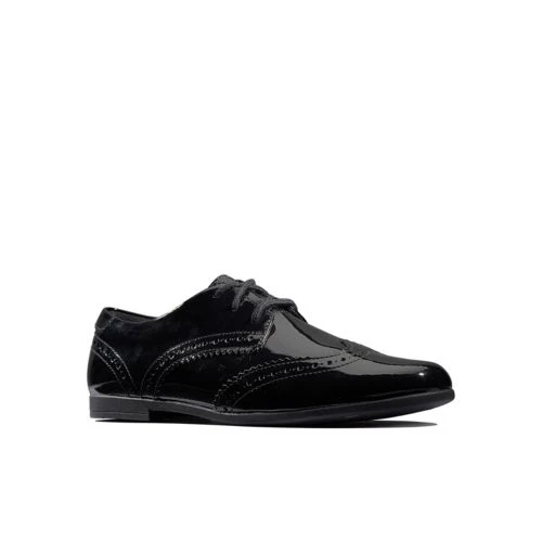 A take on the traditional brogue, these lace-up shoes for school use a glossy black patent with authentic punching. Lightweight, these shoes use a durable rubber sole with flex grooves for enhanced movement of the foot, while an Agion infused lining.