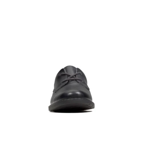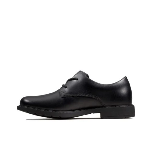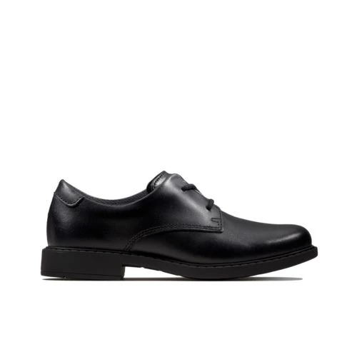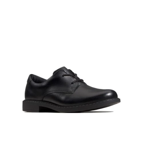 Offering a smart look with a touch of tradition, these premium black leather lace-ups have a minimal aesthetic that is perfect for school. A lightweight rubber sole enhances movement thanks to flex grooves, while an antimicrobial