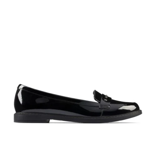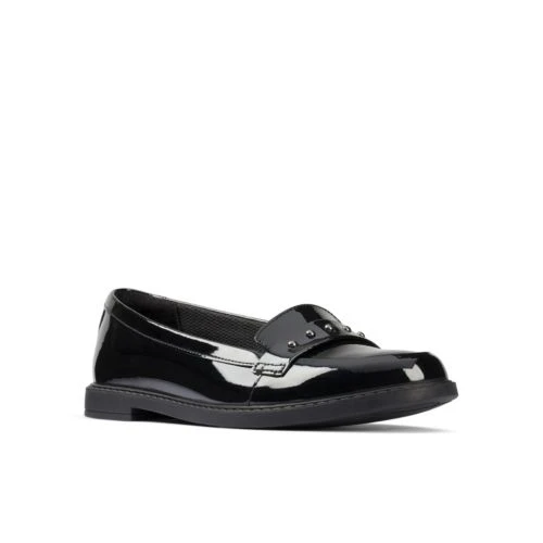 These slip-on loafers offer a premium, modern school shoe profile, crafted in black patent leather with minimal detailing. Comfort is assured thanks to the padded collar and flexible, lightweight rubber sole.