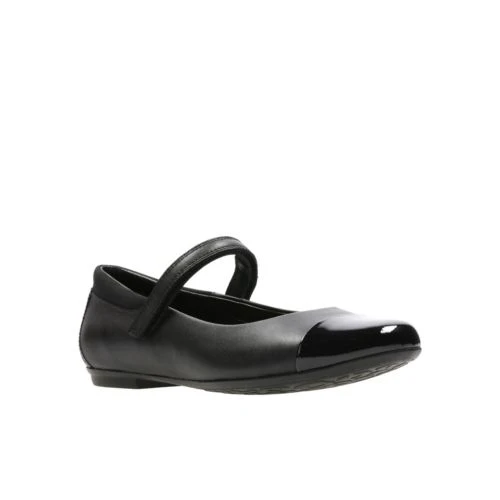 These simple bar shoes offer a sophisticated look with the black leather upper that features a black patent toe cap and detail on the heel. The slim rubber sole unit is both lightweight and durable, while the riptape fastening offers a secure fit.